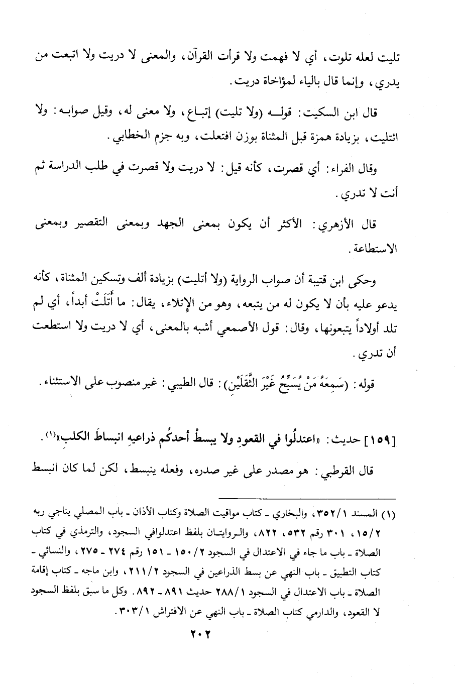 159 - حديث (اعتدلوا في السجود ولا يَبْسُط أحدُكم ذراعيه انبساط الكلب).