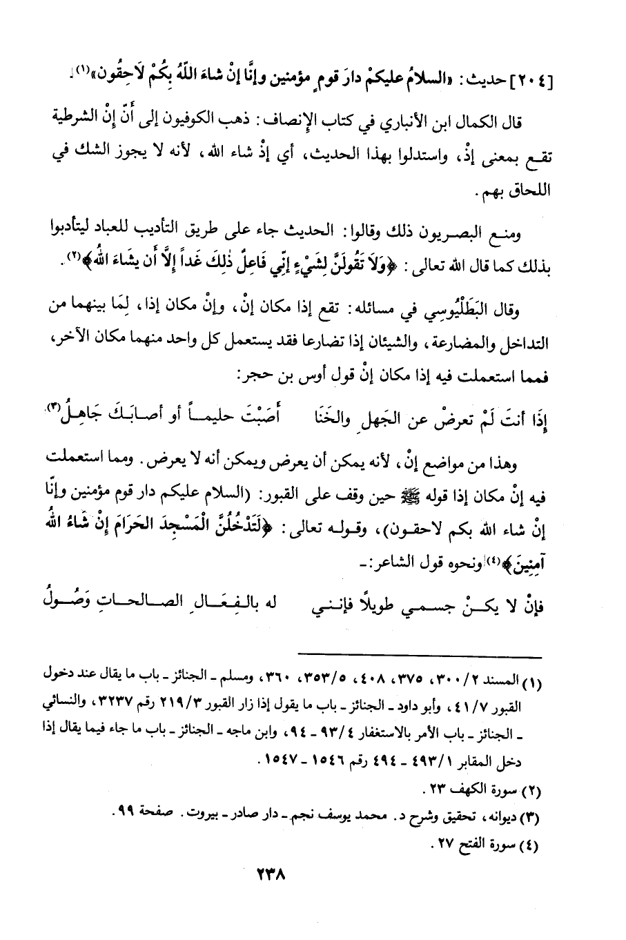 204 - حديث: "السلام عليكم دار قوم مؤمنين وإنّا إن شاء الله بكم لاحقون".