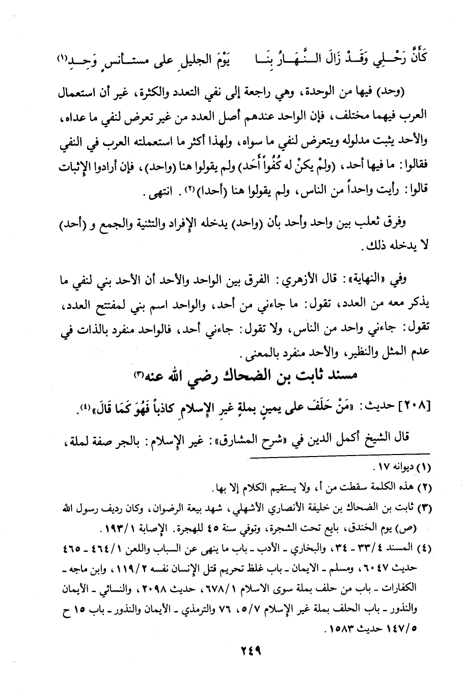 208 - حديث:" من حلف على يمين بملة غيرِ الإسلام كاذبًا فهو كما قال".