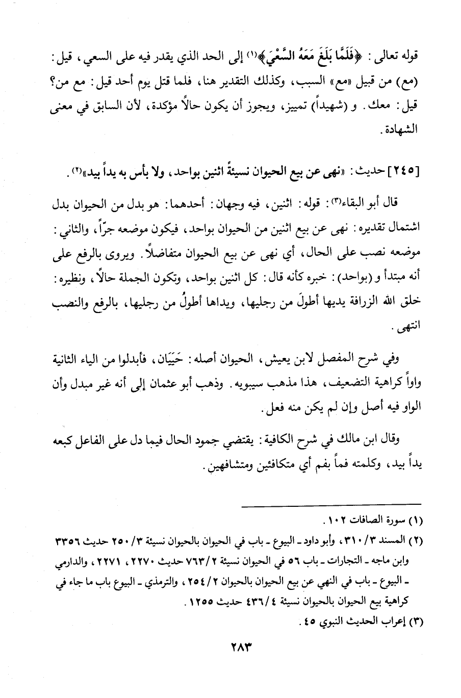 245 - حديث: "نهى عن بيع الحيوان نسيئةً اثنين بواحد، ولا بأس به يدًا بيد".