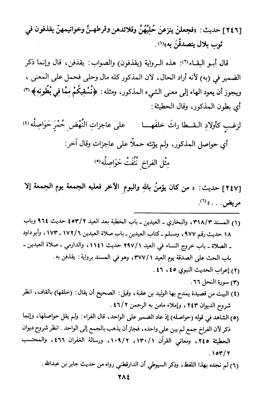 246 - حديث: "فجعلن ينزعن حُلِيَّهنَّ وقلائدهن وقرطهنَّ وخواتيمهنّ يقذفون في ثوب بلال يتصدقن به".