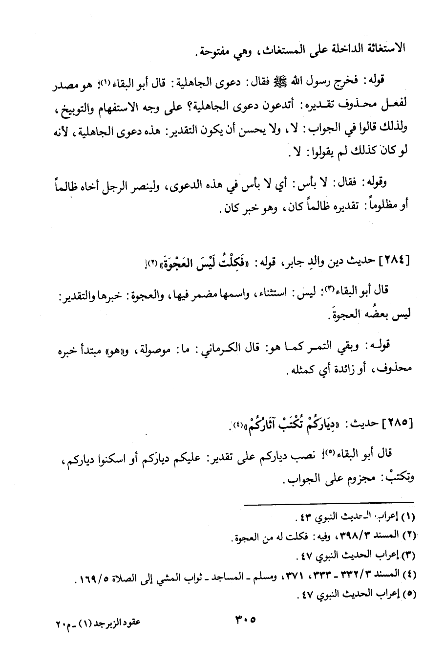 285 - حديث: "ديارَكم تُكتَبْ آثارُكم".