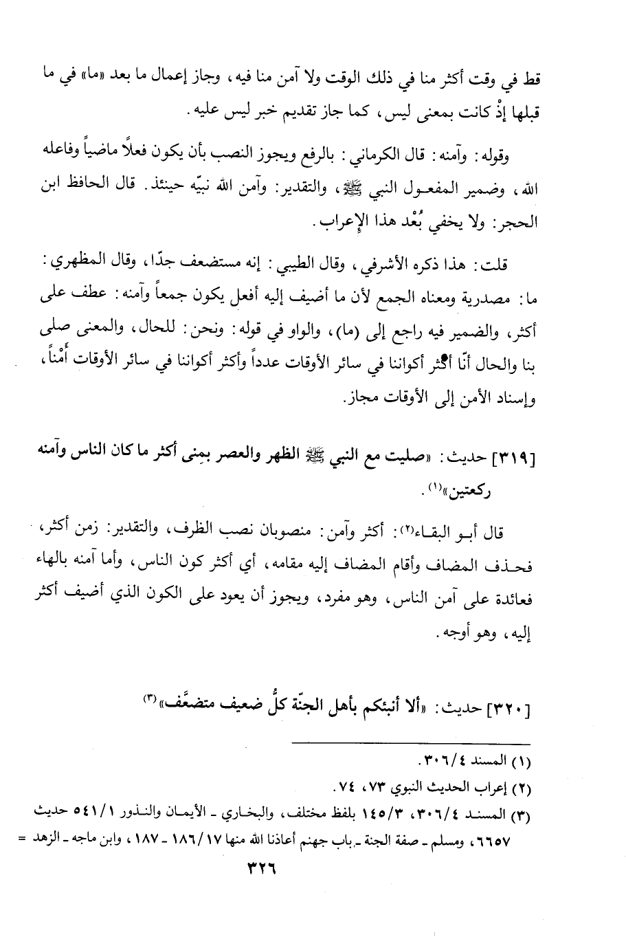 319 - حديث: "صليت مع النبي صلى الله عليه وسلم الظهر والعصر بمنى أكثر ما كان الناس وآمنه ركعتين".