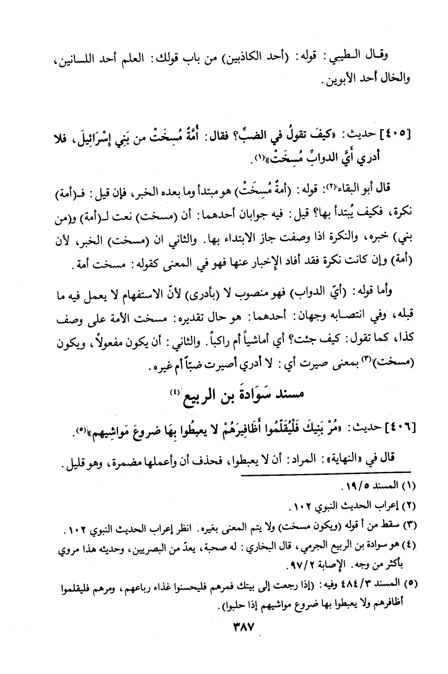 405 - حديث: "كيف تقول في الضبِّ؟ فقال: أمَّةٌ مسخت من بني إسرائيل، فلا أدري أيَّ الدواب مسخت".
