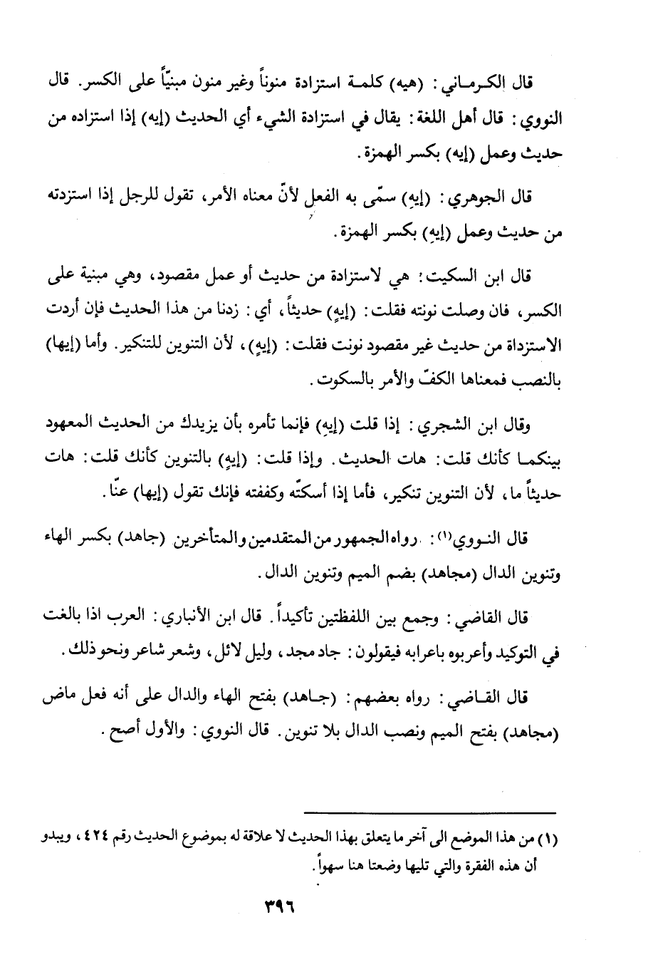 قال النووي: رواه الجمهور من المتقدمين والمتأخرين (جاهد) بكسر الهاء وتنوين الدال (مجاهد) بضم الميم وتنوين الدال.