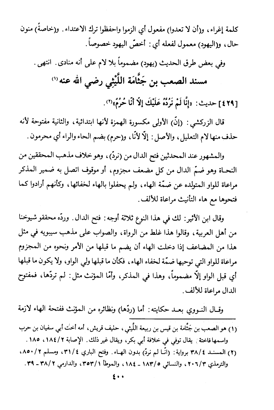 مسند الصعب بن جَثَّامة الليثي رضي الله عنه