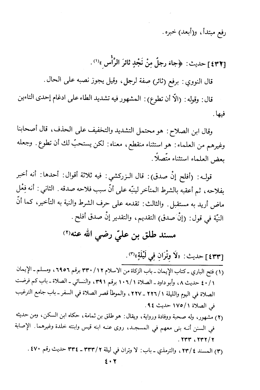 433 - حديث: "لا وتران في ليلة".