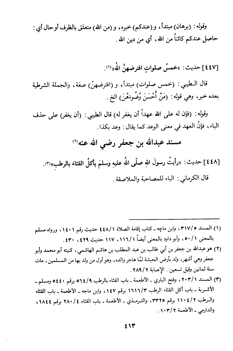 447 - حديث: "خمسُ صلوات افترضهنّ الله".
