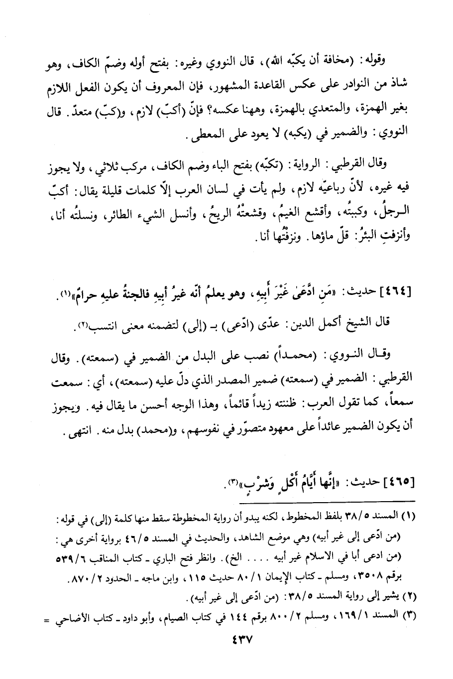 464 - حديث: "من ادّعى غير أبيه، وهو يعلمُ أنّه غيرُ أبيه فالجنة عليه حرامٌ".