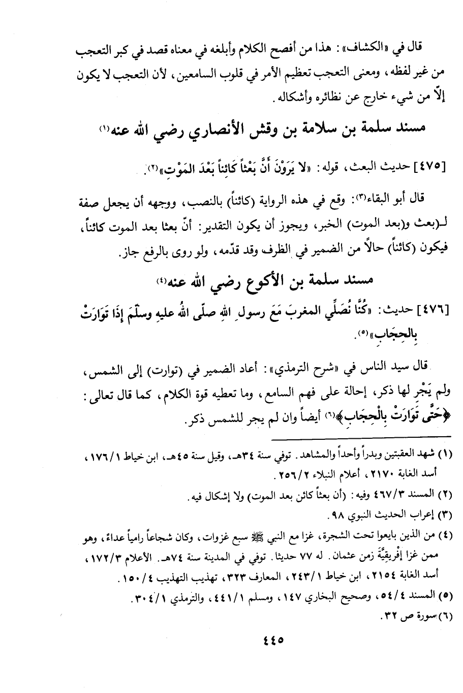 476 - حديث: "كنا نصلي مع رسول الله صلى الله عليه وسلم إذا توارت بالحجاب".