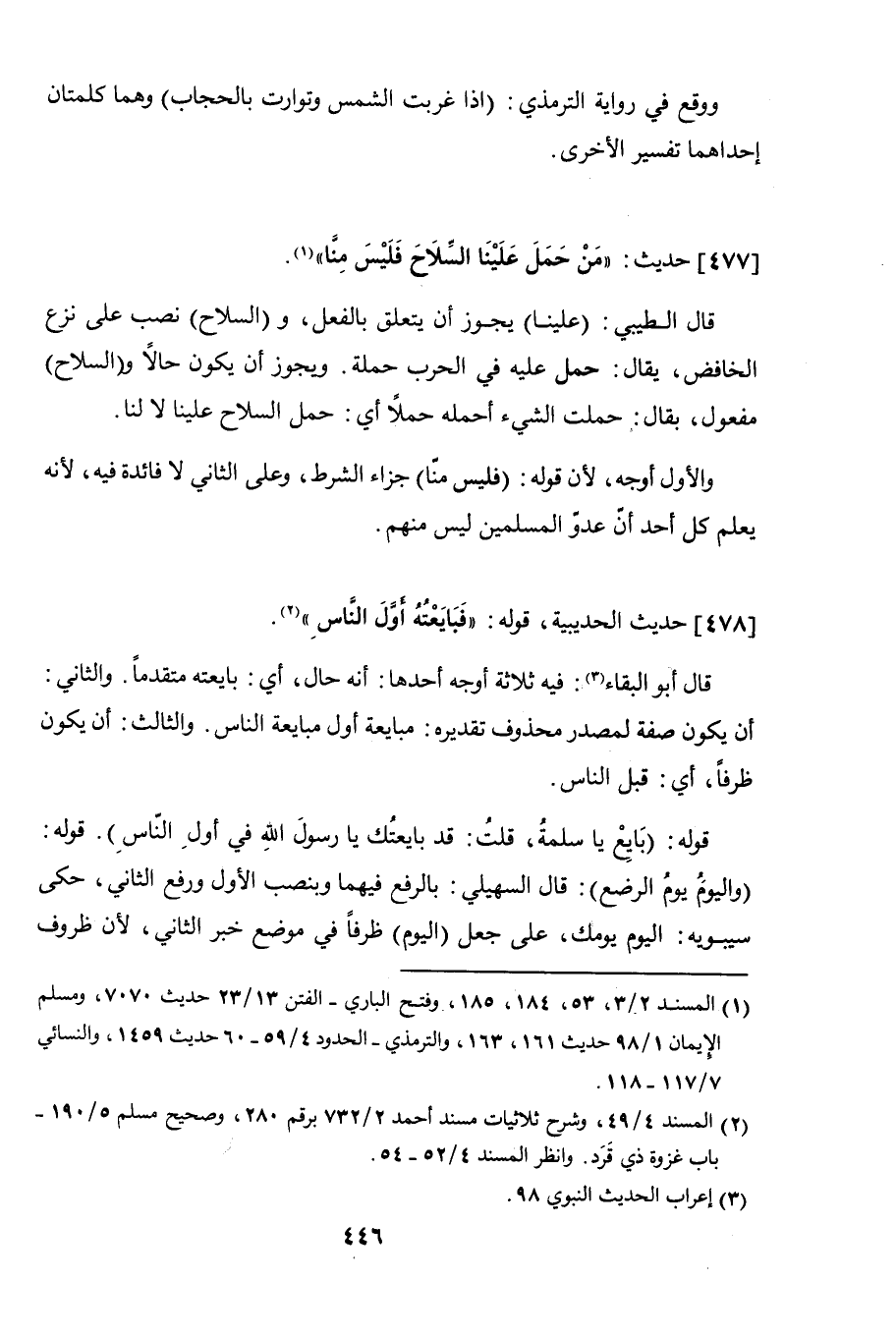 477 - حديث: "من حمل علينا السلاح فليس منّا".