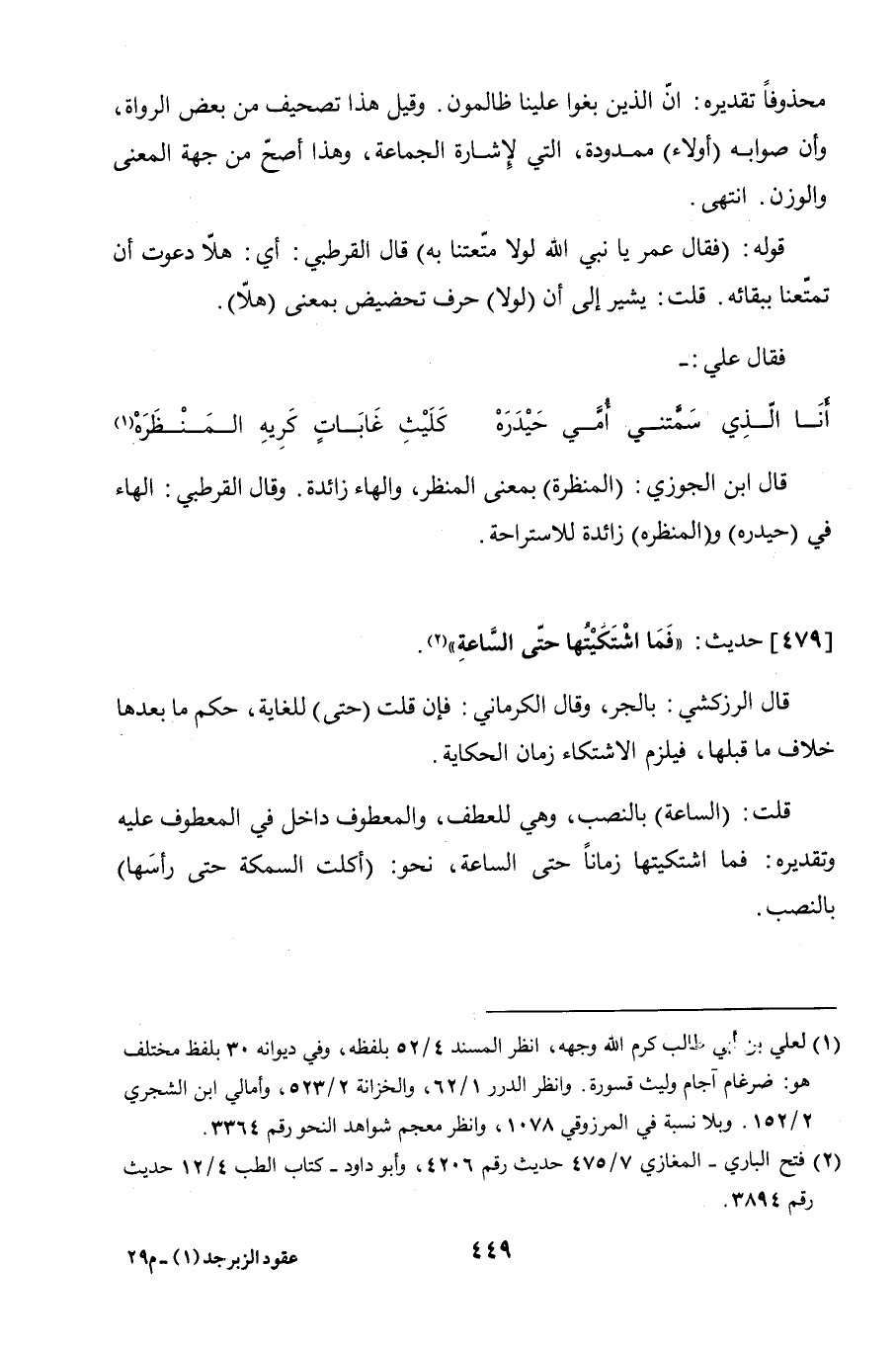 479 - حديث: "فما اشتكيتها حتى الساعةِ".