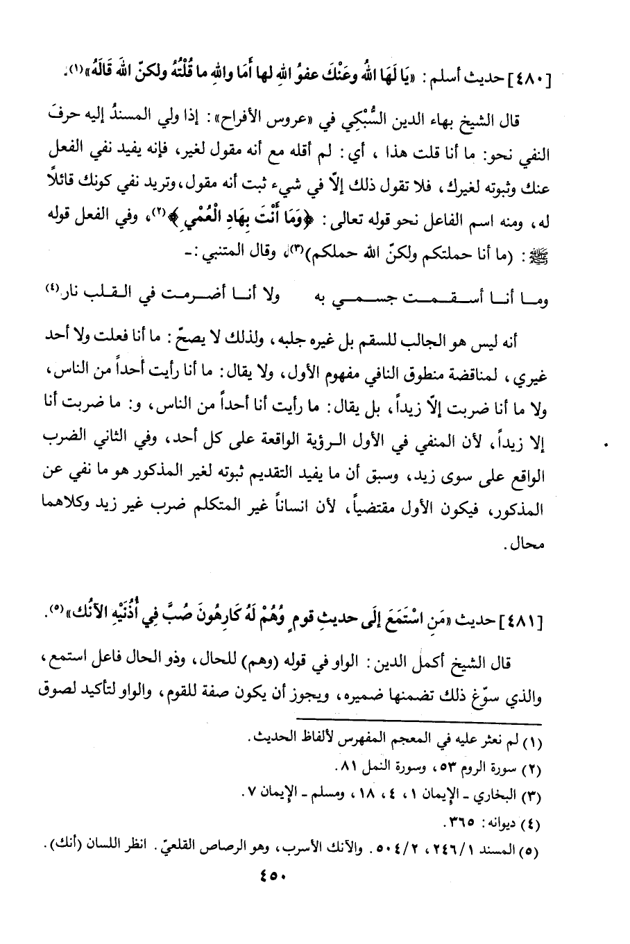 481 - حديث: "من استمع إلى حديث قوم وهم له كارهون صُبَّ في أذنيه الآنُك".