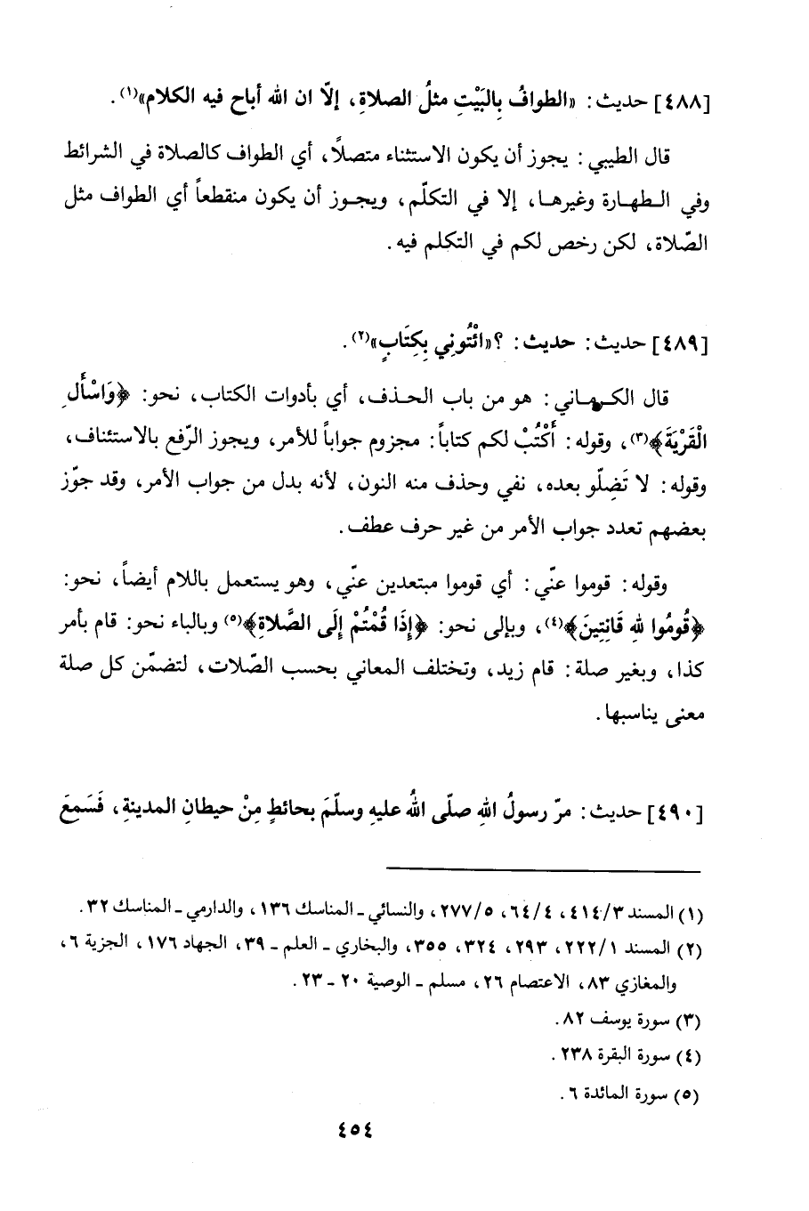 488 - حديث: "الطواف بالبيت مثل الصلاة، إلاّ أن الله أباح فيه الكلام".