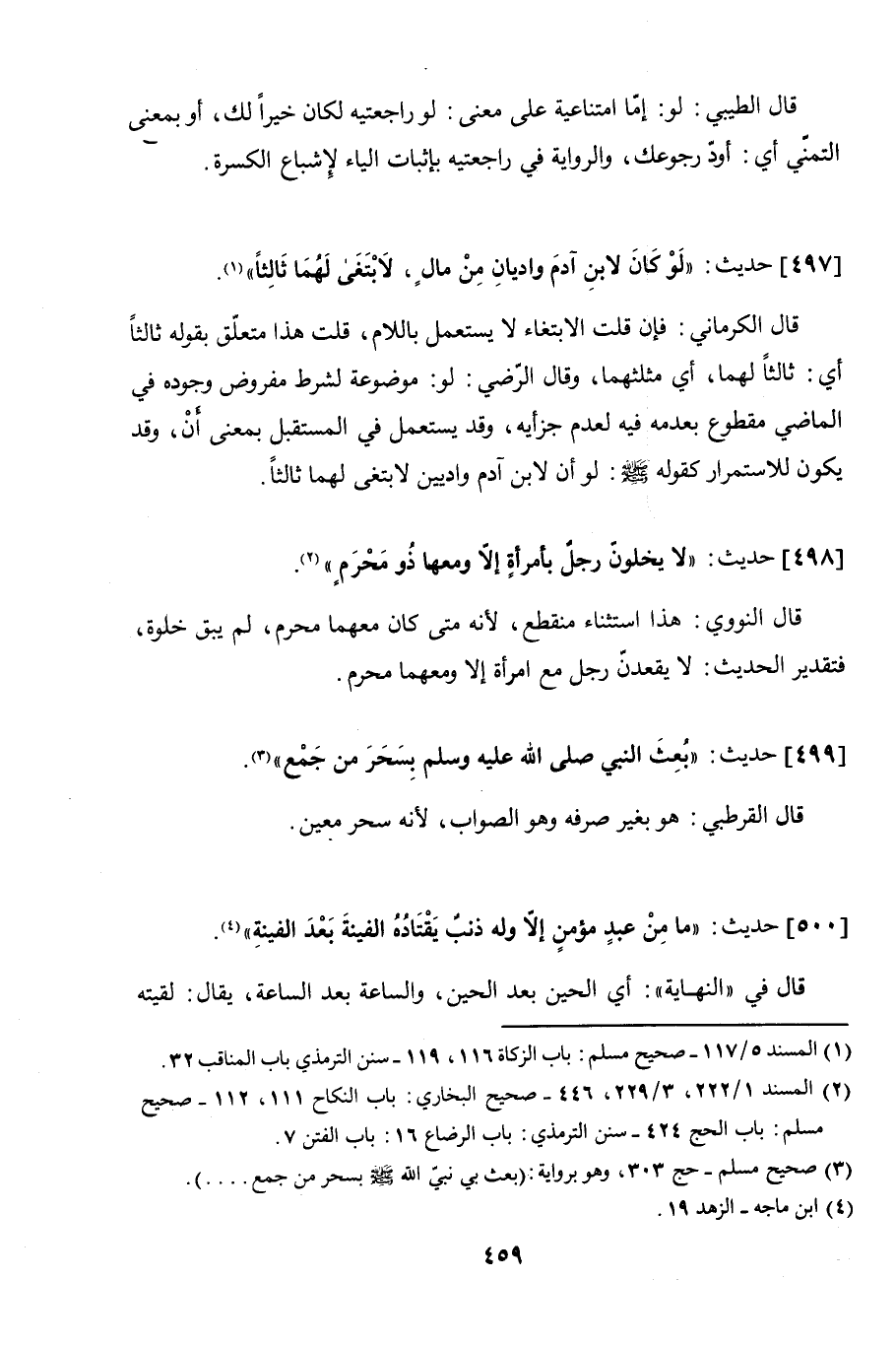 497 - حديث: "لو كان لابن آدم واديان من مال، لابتغى لهما ثالثًا".