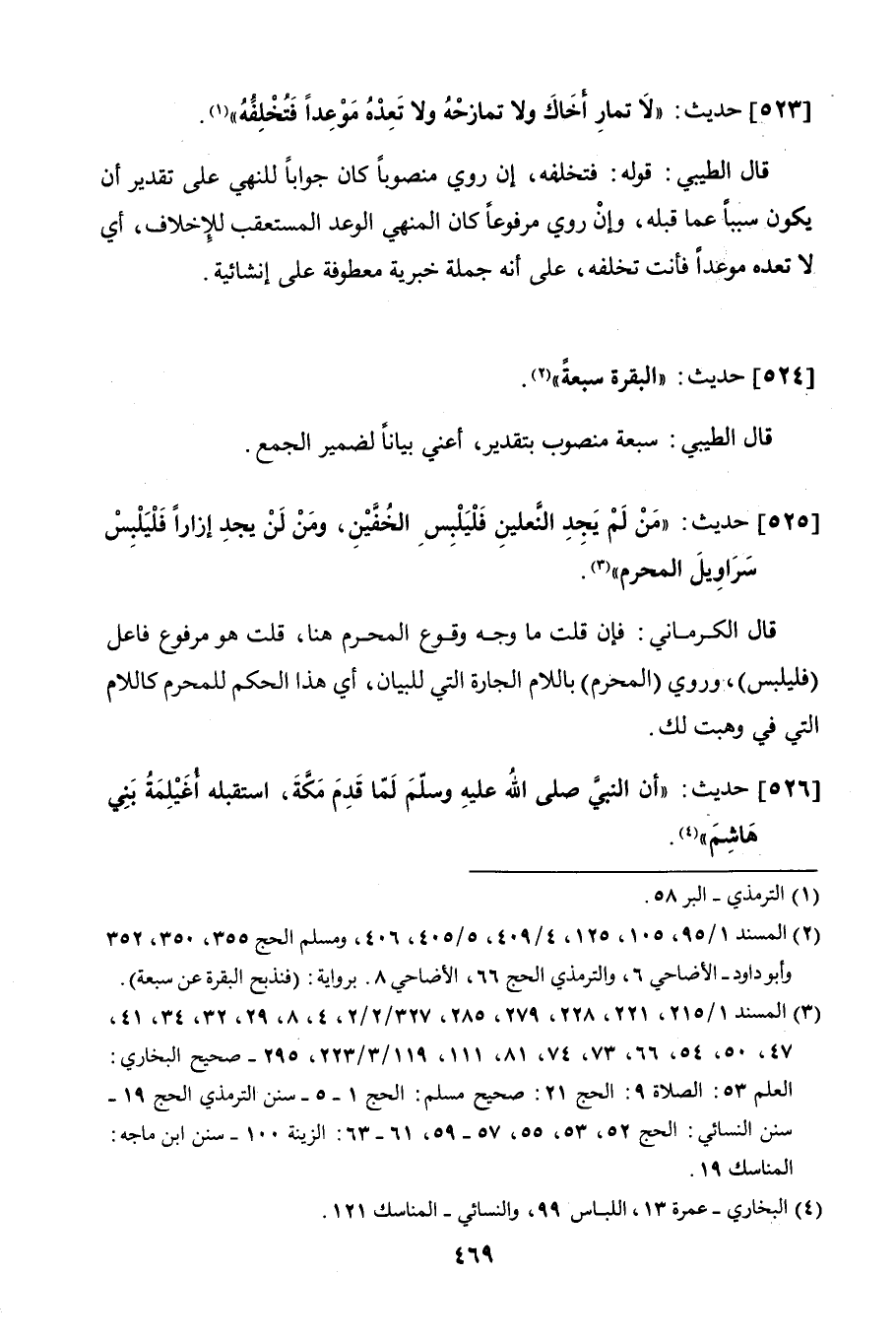 525 - حديث: "من لم يجد النعلين فليلبس الخفين، ومن لم يجد إزارًا فليلبس سروايل المحرم".