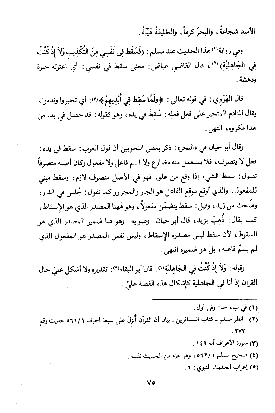 قال القاضي عياض: "معنى سُقِطَ في نفسي لما أي أعزته حيرة ودهشة".