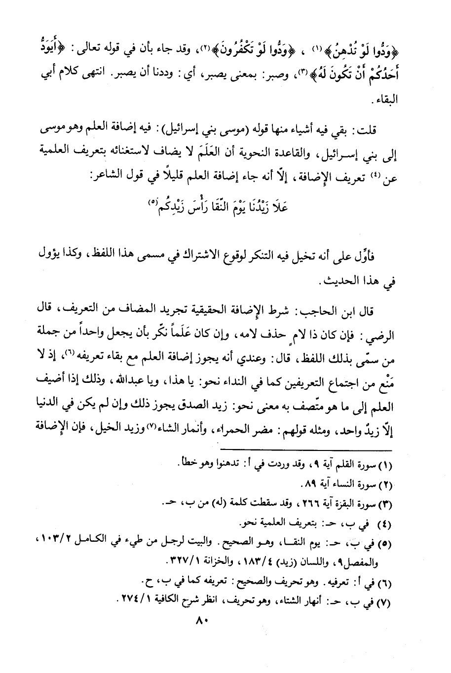 قال ابن الحاجب: "شرط الإضافة الحقيقية تجريد المضاف من التعريف".