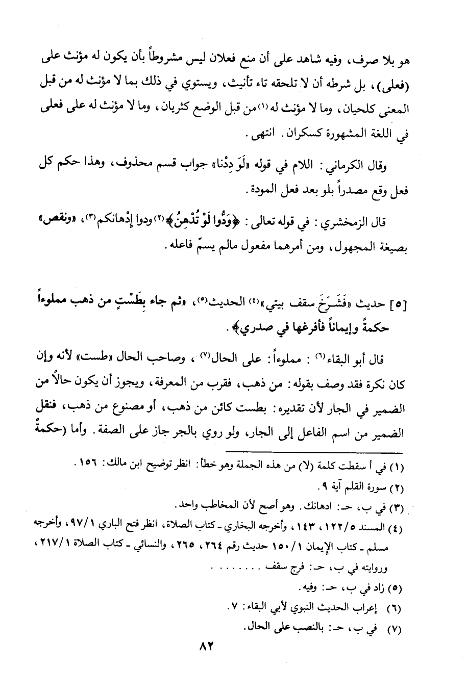 وقال الكرمانى: "اللام في قوله (لَوَدِدْنا) جواب قسم محذوف. و (لوصَبَر) في تقدير المصدر، أي والله لوددنا صبر موسى. وهذا حكم كلّ فعل وقع مصدّراً بلو بعد فعل المودّة. قال الزمخشرى في قوله تعالى: {وَدُّوا لَوْ تُدْهِنُ} ودّوا إدهانك. و (يُقَصّ) بصيغة المجهول. و (مِنْ أمرهما) مفعول ما لم يسمّ فاعله". [انتهى كلام الكرمانى].