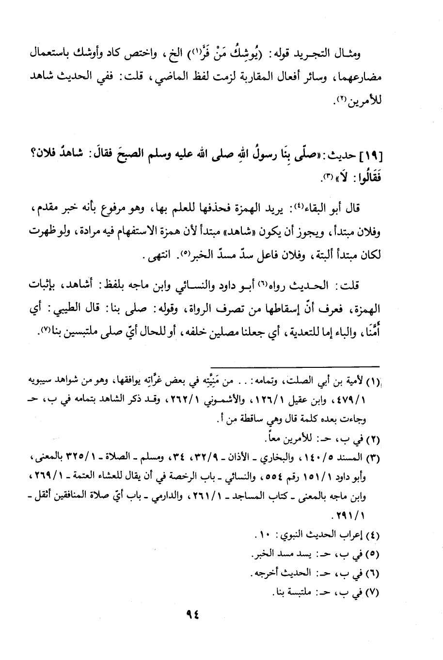 19 - حديث: "صلّى بنا رسول الله صلى الله عليه وسلم الصُّبح فقال: شاهدٌ فلان؟ فقالوا: لا".