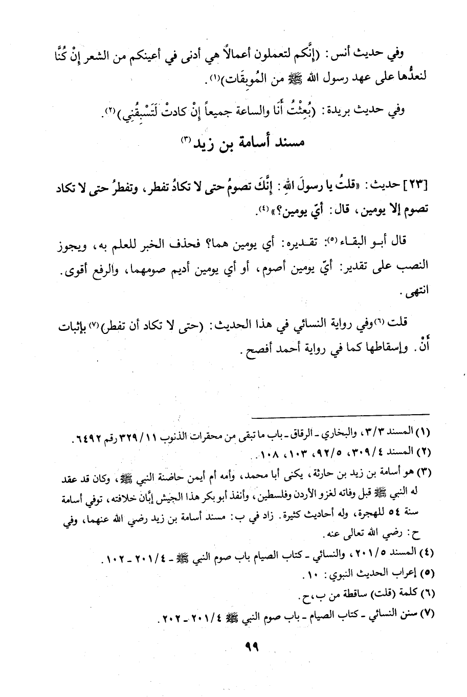 23 - حديث "قُلتُ: يا رسولَ الله، إنَّكَ تَصومُ حتَّى لا تكاد تُفْطِرُ، وتُفْطِرُ حتى لا تكاد تصوم إلاّ يومين. قال: أيّ يومين؟ ".