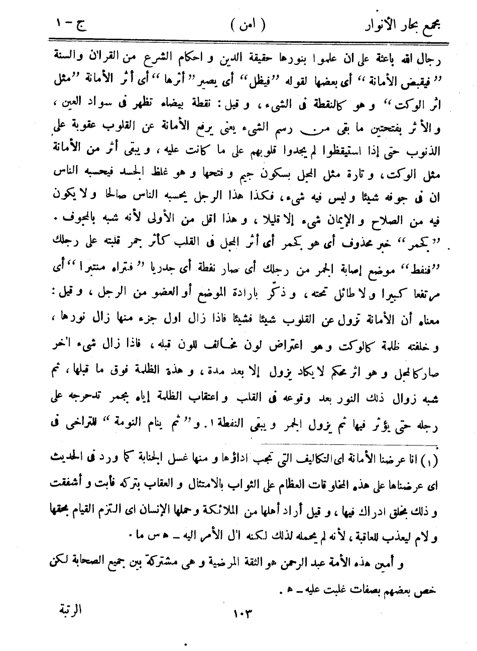 رجال الله باعثة على أن علموا بنورها حقيقة الدين وأحكام الشرع من القرآن والسنة "فيقبض الأمانة" أي بعضها لقوله "فيظل" أي يصير "أثرها" أي أثر الأمانة "مثل أثر الوكت" وهو كالنقطة في الشيء، وقيل: نقطة بيضاء تظهر في سواد العين، والأثر بفتحتين ما بقي من رسم الشيء يعني يرفع الأمانة عن القلوب عقوبة على الذنوب حتى إذا استيقظوا لم يجدوا قلوبهم على ما كانت عليه، ويبقى أثر من الأمانة مثل الوكت، وتارة مثل المجل بسكون جيم وفتحها وهو غلظ الجسد فيحسبه الناس أن في جوفه شيئاً وليس فيه شيء، فكذا هذا الرجل يحسبه الناس صالحاً ولا يكون فيه من الصلاح والإيمان شيء إلا قليلاً، وهذا أقل من الأولى لأنه شبه بالمجوف. "كجمر" خبر محذوف أي هو كجمر أي أثر المجل في القلب كأثر جمر قلبته على رجلك "فنفط" موضع إصابة الجمر من رجلك أي صار نفطة أي جدرياً "فتراه منتبرا" أي مرتفعاً كبيراً ولا طائل تحته، وذكر بإرادة الموضع أو العضو من الرجل، وقيل: معناه أن الأمانة تزول عن القلوب شيئاً فشيئاً فإذا زال أول جزء منها زال نورها، وخلفته ظلمة كالوكت وهو اعتراض لون مخالف للون قبله، فإذا زال شيء آخر صار كالمجل وهو أثر محكم لا يكاد يزول إلا بعد مدة، وهذه الظلمة فوق ما قبلها، ثم شبه زوال ذلك النور بعد وقوعه في القلب واعتقاب الظلمة إياه يجمر تدحرجه على رجله حتى يؤثر فيها ثم يزول الجمر ويبقى النفطة. و"ثم ينام النومة" للتراخي في