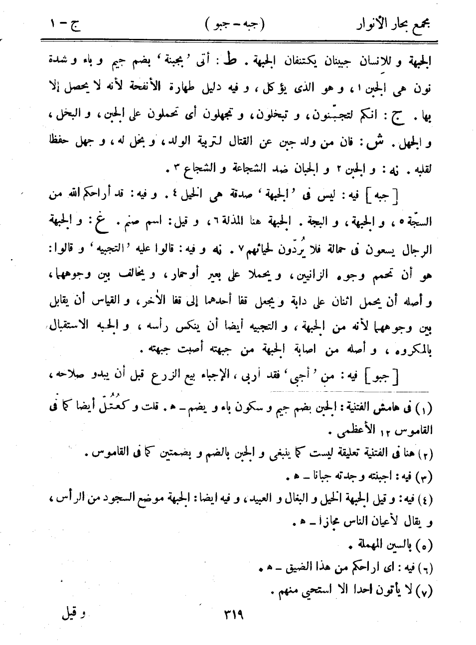 الجبهة وللإنسان جبينان يكتنفان الجبهة. ط: أتى "بجبنة" بضم جيم وباء وشدة نون هي الجبن، وهو الذي يؤكل، وفيه دليل طهارة الأنفحة لأنه لا يحصل إلا بها. ج: أنكم لتجبنون، وتبخلون، وتجهلون أي تحملون على الجبن، والبخل، والجهل. ش: فإن من ولد جبن عن القتال لتربية الولد، وبخل له، وجهل حفظاً لقلبه. نه: والجبن والجبان ضد الشجاعة والشجاع.