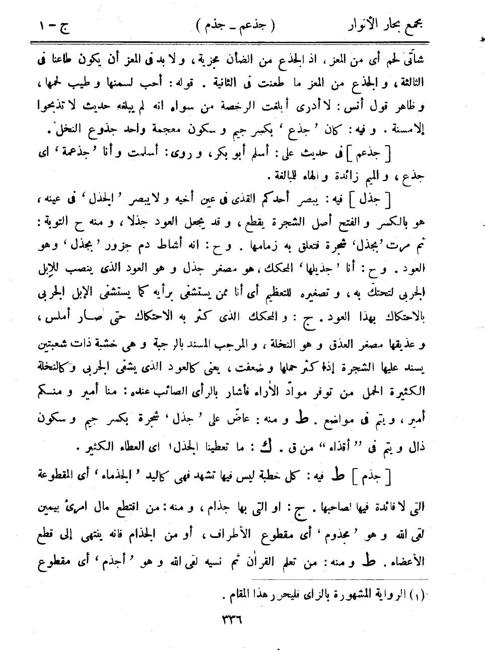 [جذل] فيه: يبصر أحدكم القذى في عين أخيه ولا يبصر "الجذل" في عينه، هو بالكسر والفتح أصل الشجرة يقطع، وقد يجعل العود جذلاً، ومنه ح التوبة: ثم مرت "بجذل" شجرة فتعلق به زمامها. وح: أنه أشاط دم جزور "بجذل" وهو العود. وح: أنا "جذيلها" المحكك، هو مصغر جذل وهو العود الذي ينصب للإبل الجربى لتحتك به، وتصغيره للتعظيم أي أنا ممن يستشفى برأيه كما يستشفي الإبل الجربى بالاحتكاك بهذا العود. ج: والمحكك الذي كثر به الاحتكاك حتى صار أملس، وعذيقها مصغر العذق وهو النخلة، والمرجب المسند بالرجبة وهي خشبة ذات شعبتين يسند عليها الشجرة إذا كثر حملها وضعفت، يعني كالعود الذي يشفي الجربى وكالنخلة الكثيرة الحمل من توفر مواد الآراء فأشار بالرأي الصائب عنده: منا أمير ومنكم أمير، ويتم في مواضع. ط ومنه: عاض على "جذل" شجرة بكسر جيم وسكون ذال ويتم في "أقذاء" من ق. ك: ما تعطينا الجذل أي العطاء الكثير.