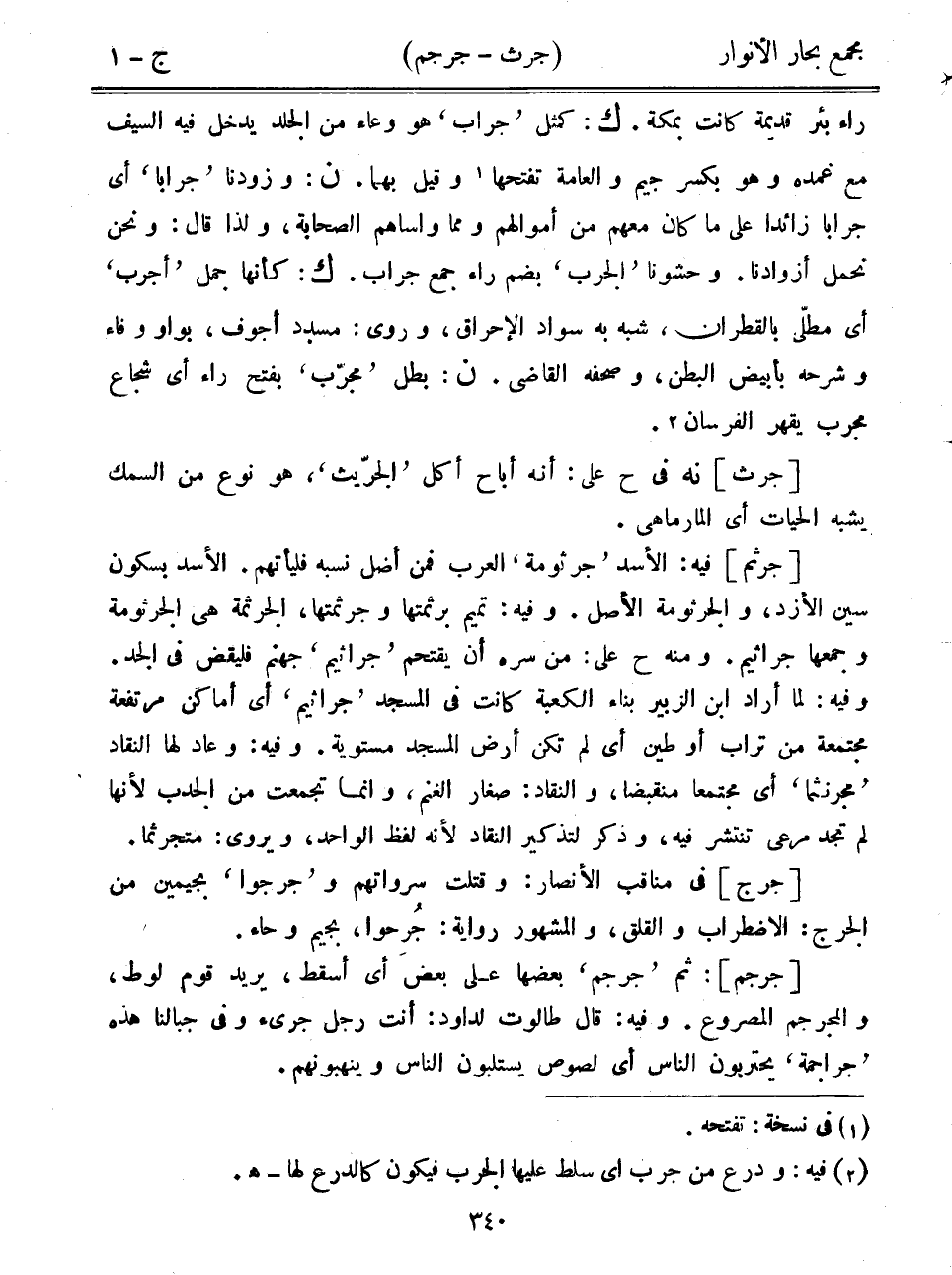[جرج] في مناقب الأنصار: وقتلت سرواتهم و"جرجوا" بجيمين من الجرج: الاضطراب والقلق، والمشهور رواية: جرحوا، بجيم وحاء.