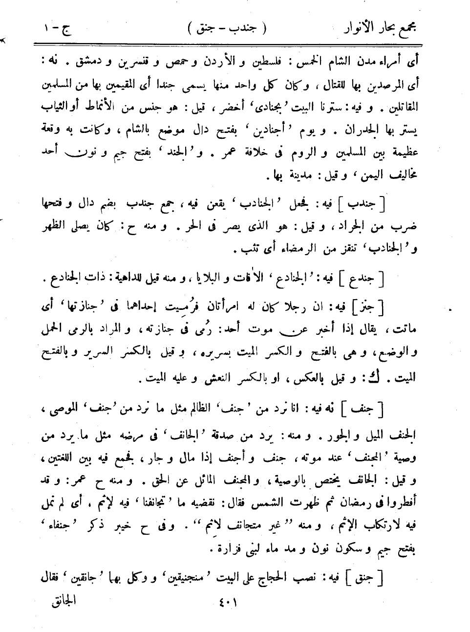 أي أمراء مدن الشام الخمس: فلسطين والأردن وحمص وقنسرين ودمشق. نه: أي المرصدين بها للقتال، وكان كل واحد منها يسمى جنداً أي المقيمين بها من المسلمين المقاتلين. وفيه: سترنا البيت "بجنادي" أخضر، قيل: هو جنس من الأنماط أو الثياب يستر بها الجدران. ويوم "أجنادين" بفتح دال موضع بالشام، وكانت به وقعة عظيمة بين المسلمين والروم في خلافة عمر. و"الجند" بفتح جيم ونون أحد مخاليف اليمن، وقيل: مدينة بها.