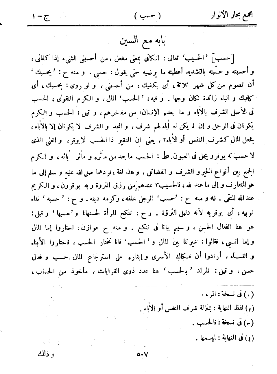 [حسب] "الحسيب" تعالى: الكافي بمعنى مفعل، من أحسبني الشيء إذا كفاني، وأحسبته وحسبته بالتشديد أعطيته ما يرضيه حتى يقول: حسبي. ومنه ح: "يحسبك" أن تصوم من كل شهر ثلاثة، أي يكفيك، من أحسبني، ولو روى: بحسبك، أي كافيك والباء زائدة لكان وجهاً. وفيه: "الحسب" المال، والكرم التقوى، الحسب في الأصل الشرف بالآباء وما يعده الإنسان من مفاخرهم، وقيل: الحسب والكرم يكونان في الرجل وإن لم يكن له آباء لهم شرف، والمجد والشرف لا يكونان إلا بالآباء، فجعل المال كشرف النفس أو الآباء، يعني أن الفقير ذا الحسب لا يوقر، والغني الذي لا حسب له يوقر ويجل في العيون. ط: الحسب ما يعد من مأثره ومآثر آبائه، والكرم الجمع بين أنواع الخير والشرف والفضائل، وهذا لغة، فردهما صلى الله عليه وسلم إلى ما هو المتعارف وإلى ما عند الله، فالحسيب عندهم من رزق الثروة وبه يوقرون، والكريم عند الله المتقي. نه ومنه ح: "حسب" الرجل خلقه، وكرمه دينه. وح: "حسبه" نقاء ثوبيه، أي يوقر به لأنه دليل الثروة. وح: تنكح المرأة لحسنها و"حسبها" وقيل: هو هنا الفعال الحسن، وسيتم بياناً في تنكح. ومنه ح هوازن: اختاروا إما المال وإما السبي، فقالوا: خيرتنا بين المال و"الحسب" فأنا نختار الحسب، فاختاروا الأبناء والنساء، أرادوا أن فكاك الأسرى وإيثاره على استرجاع المال حسب وفعال حسن، وقيل: المراد "بالحسب" هنا عدد ذوي القرابات، مأخوذ من الحساب،