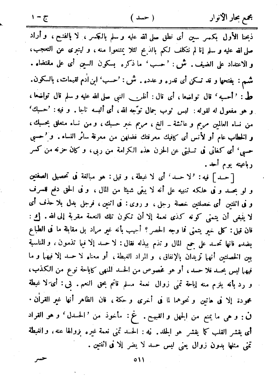 ذبحنا الأول بكسر سين أي نطق صلى الله عليه وسلم بالكسر، لا بالفتح، وأراد صلى الله عليه وسلم إنا لم نتكلف لكم بالذبح لئلا يمتنعوا منه، وليتبرى عن التعجب، والاعتداد على الضيف. ش: "حسب" ما ذكره بسكون السين أي على مقتضاه. شم: بفتحها وقد تسكن أي قدره وعدده. ش: "حسب" ابن آدم لقيمات، بالسكون. ط: "أحسبه" قال تواضعاً، أي قال: أظن النبي صلى الله عليه وسلم قال تواضعاً، وهو مفعول له لقوله: لبس ثوب جمال توجه الله، أي ألبسه تاجاً. وفيه: "حسبك" من نساء العالمين مريم وعائشة- إلخ، مريم خبر حسبك، ومن نساء متعلق بحسبك، والخطاب عام أو لأنس أي كافيك معرفتك فضلهن من معرفة سائر النساء. و"حسبي حسبي" أي كفاني في تسليتي عن الحزن هذه الكرامة من ربي، وكان حزنه من كسر رباعيته يوم أحد.
