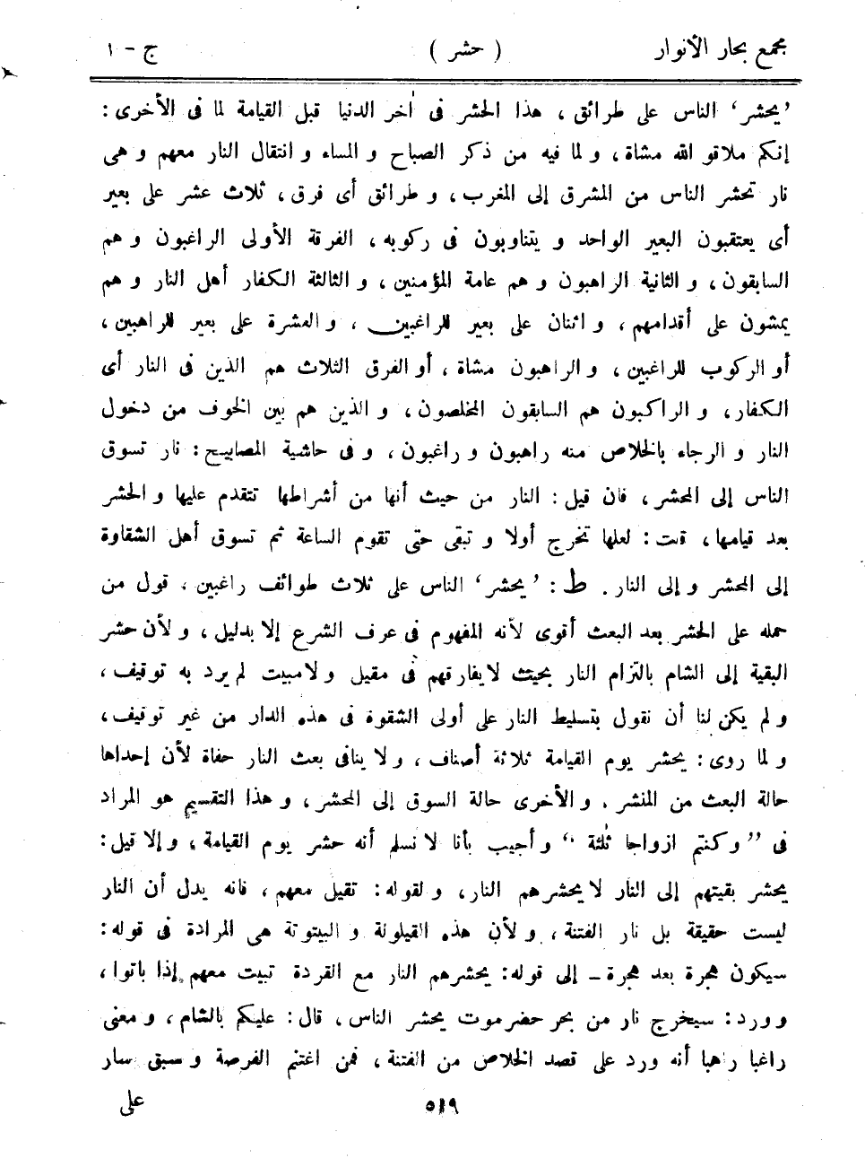 "يحشر" الناس على طرائق، هذا الحشر في آخر الدنيا قبل القيامة لما في الأخرى: إنكم ملاقو الله مشاة، ولما فيه من ذكر الصباح والمساء وانتقال النار معهم وهي نار تحشر الناس من المشرق إلى المغرب، وطرائق أي فرق، ثلاث عشر على بعير أي يعتقبون البعير الواحد ويتناوبون في ركوبه، الفرقة الأولى الراغبون وهم السابقون، والثانية الراهبون وهم عامة المؤمنين، والثالثة الكفار أهل النار وهم يمشون على أقدامهم، واثنان على بعير للراغبين، والعشرة على بعير للراهبين، أو الركوب للراغبين، والراهبون مشاة، أو الفرق الثلاث هم الذين في النار أي الكفار، والراكبون هم السابقون المخلصون، والذين هم بين الخوف من دخول النار والرجاء بالخلاص منه راهبون وراغبون، وفي حاشية المصابيح: نار تسوق الناس إلى المحشر، فإن قيل: النار من حيث أنها من أشراطها تتقدم عليها والحشر بعد قيامها، قت: لعلها تخرج أولاً وتبقى حتى تقوم الساعة ثم تسوق أهل الشقاوة إلى المحشر وإلى النار. ط: "يحشر" الناس على ثلاث طوائف راغبين، قول من حمله على الحشر بعد البعث أقوى لأنه المفهوم في عرف الشرع إلا بدليل، ولأن حشر البقية إلى الشام بالتزام النار بحيث لا يفارقهم في مقيل ولا مبيت لم يرد به توقيف، ولم يكن لنا أن نقول بتسليط النار على أولى الشقوة في هذه الدار من غير توقيف، ولما روى: يحشر يوم القيامة ثلاثة أصناف، ولا ينافي بعث النار حفاة لأن إحداها حالة البعث من المنشر، والأخرى حالة السوق إلى المحشر، وهذا التقسيم هو المراد في "وكنتم أزواجاً ثلثة" وأجيب بأنا لا نسلم أنه حشر يوم القيامة، وإلا قيل: يحشر بقيتهم إلى النار لا يحشرهم النار، ولقوله: تقيل معهم، فإنه يدل أن النار ليست حقيقة بل نار الفتنة، ولأن هذه القيلولة والبيتوتة هي المرادة في قوله: سيكون هجرة بعد هجرة- إلى قوله: يحشرهم النار مع القردة تبيت معهم إذا باتوا، وورد: سيخرج نار من بحر حضرموت يحشر الناس، قال: عليكم بالشام، ومعنى راغباً رهباً أنه ورد على قصد الخلاص من الفتنة، فمن اغتنم الفرصة وسبق سار