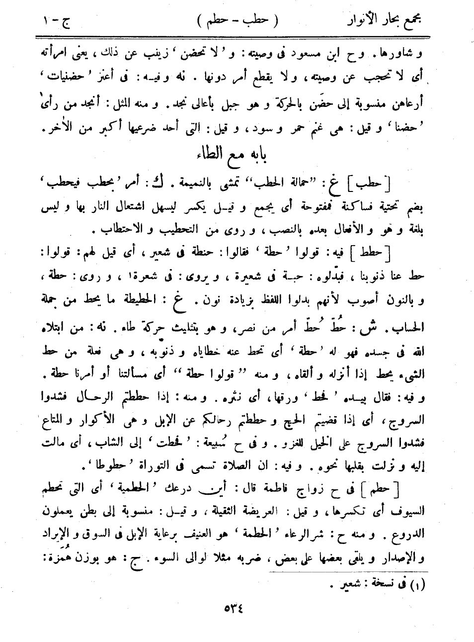 [حطط] فيه: قولوا "حطة" فقالوا: حنطة في شعير، أي قيل لهم: قولوا: حط عنا ذنوبنا، فبدلوه: حبة في شعيرة، ويروى: في شعرة، وروى: حطة، وبالنون أصوب لأنهم بدلوا اللفظ بزيادة نون. غ: الحطيطة ما يحط من جملة الحساب. ش: حط حط أمر من نصر، وهو بتثليث حركة طاء. نه: من ابتلاه الله في جسده فهو له "حطة" أي تحط عنه خطاياه وذنوبه، وهي فعلة من حط الشيء يحط إذا أنزله وألقاه، ومنه "قولوا حطة" أي مسألتنا أو أمرنا حطة. وفيه: فقال بيده "فحط" ورقها، أي نثره. ومنه: إذا حططتم الرحال فشدوا السروج، أي إذا قضيتم الحج وحططتم رحالكم عن الإبل وهي الأكوار والمتاع فشدوا السروج على الخير للغزو. وفي ح "سبيعة: "فحطت" إلى الشاب، أي مالت إليه ونزلت بقلبها نحوه. وفيه: أن الصلاة تسمى في التوراة "حطوطا".