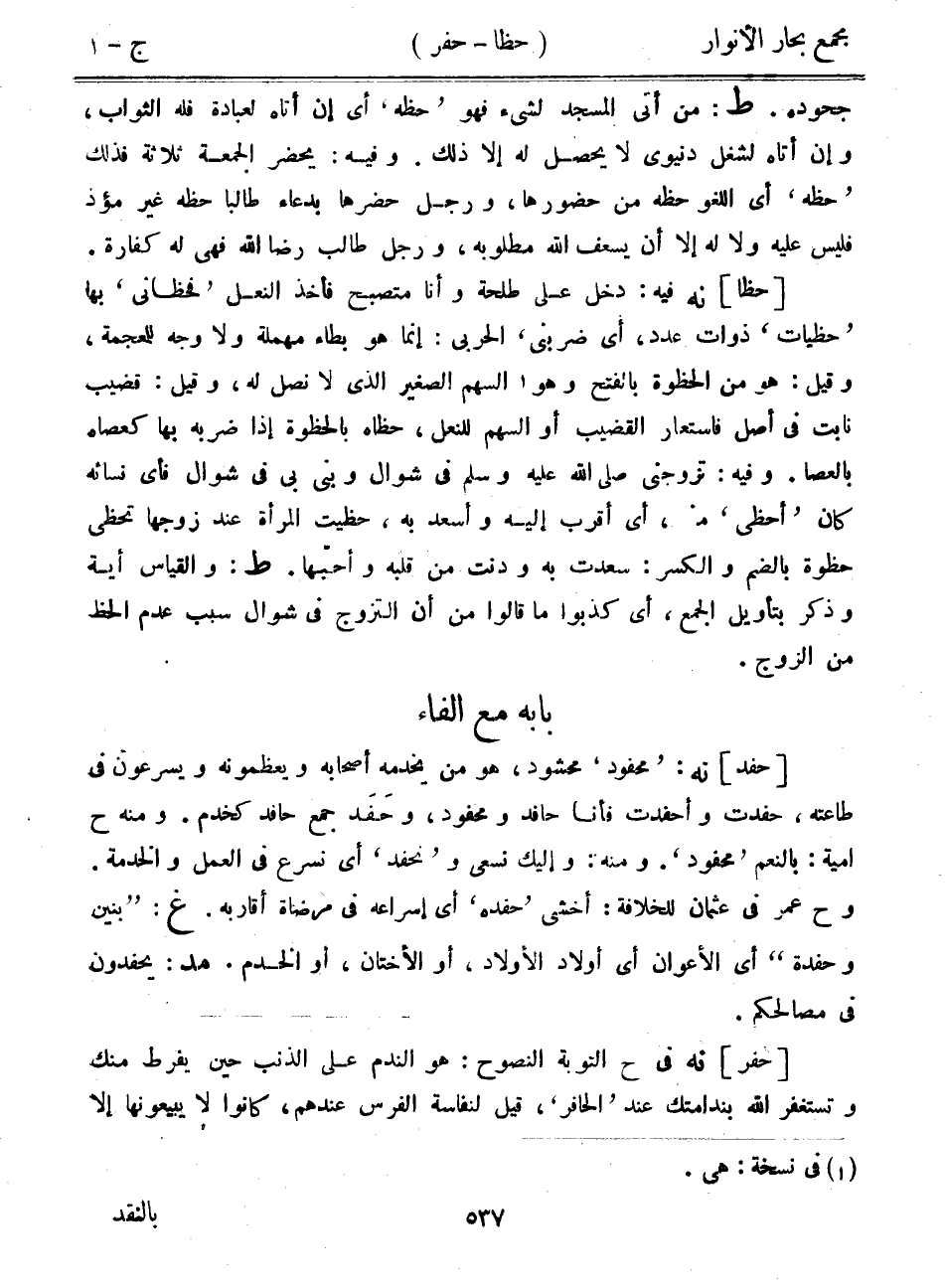 [حفر] نه في ح التوبة النصوح: هو الندم على الذنب حين يفرط منك وتستغفر الله بندامتك عند "الحافر"، قيل لنفاسة الفرس عندهم، كانوا لا يبيعونها إلا