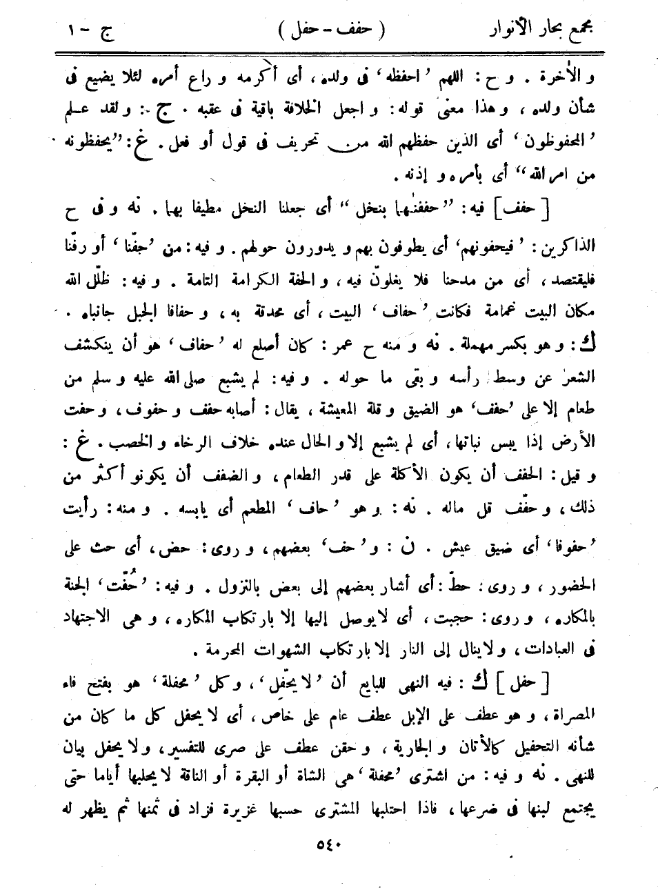[حفل] ك: فيه النهي للبايع أن "لا يحفل"، وكل "محفلة" هو بفتح فاء المصراة، وهو عطف على الإبل عطف عام على خاص، أي لا يحفل كلم اكان من شأنه التحفيل كالأتان والجارية، وحقن عطف على صرى للتفسير، ولا يحفل بيان للنهي. نه وفيه: من اشترى "محفلة" هي الشاة أو البقرة أو الناقة لا يحلبها أياماً حتى يجتمع لبنها في ضرعها، فإذا احتلبها المشتري حسبها غزيرة فزاد في ثمنها ثم يظهر له