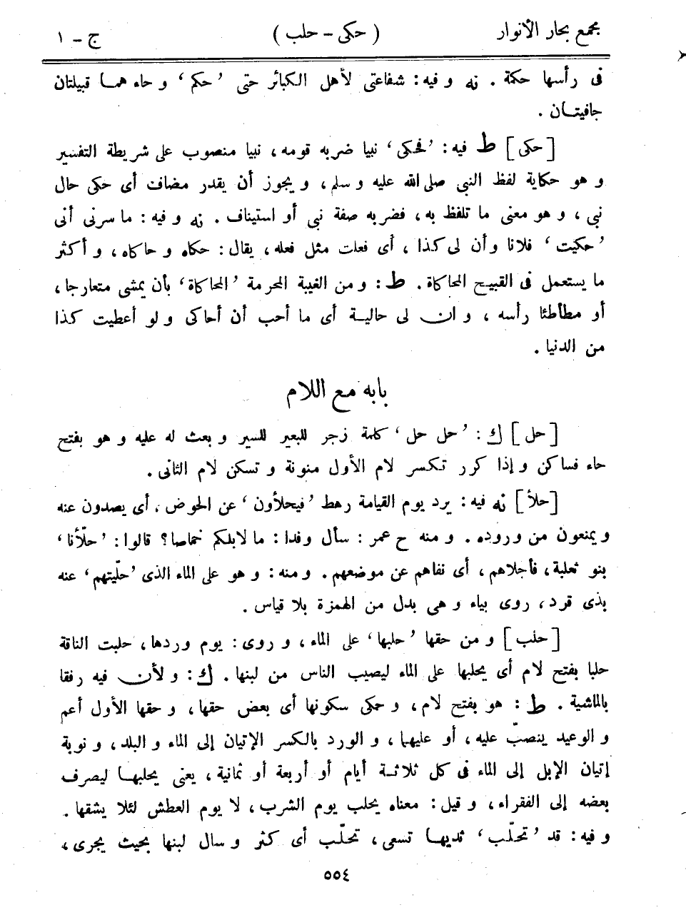[حلب] ومن حقها "حلبها" على الماء، وروي: يوم وردها، حلبت الناقة حلبًا بفتح لام أي يحلبها على الماء ليصيب الناس من لبنها. ك: ولأن فيه رفقًا بالماشية. ط: هو بفتح لام، وحكي سكونها أي بعض حقها، وحقها الأول أعم والوعيد ينصب عليه، أو عليهما، والورد بالكسر الإتيان إلى الماء والبلد، ونوبة إتيان الإبل إلى الماء في كل ثلاثة أيام أو أربعة أو ثمانية، يعني يحلبها ليصرف بعضه إلى الفقراء، وقيل: معناه يحلب يوم الشرب، لا يوم العطش لئلا يشقها. وفيه: قد "تحلب" ثديها تسعى، تحلب أي كثر وسال لبنها بحيث يجري،