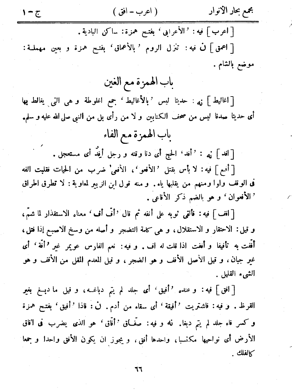 [افق] فيه: وعنده "أفيق" أي جلد لم يتم دباغه، وقيل ما دبغ بغير القرظ. وفيه: فاشتريت "أفيقة" أي سقاء من أدم. ن: فإذا "أفيق" بفتح همزة وكسر فاء جلد لم يتم دبغا. نه وفيه: صفاق "أفاق" هو الذي يضرب في أفاق الأرض أي نواحيها مكتسباً، واحدها أفق، ويجوز أن يكون الأفق واحداً وجمعاً كالفلك.