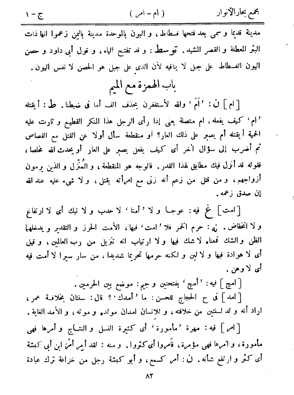 [امت] غ فيه: عوجاً ولا "أمتا" لا حدب ولا نبك أي لا ارتفاع ولا انخفاض. نه: حرم الخمر فلا "امت" فيها، الأمت الحرز والتقدير ويدخلهما الظن والشك فمعناه لا شك فيها ولا ارتياب أنه تنزيل من رب العالمين، وقيل أي لا هوادة فيها ولا لين ولكنه حرمها تحريماً شديداً، من سار سيراً لا أمت فيه أي لا وهن.