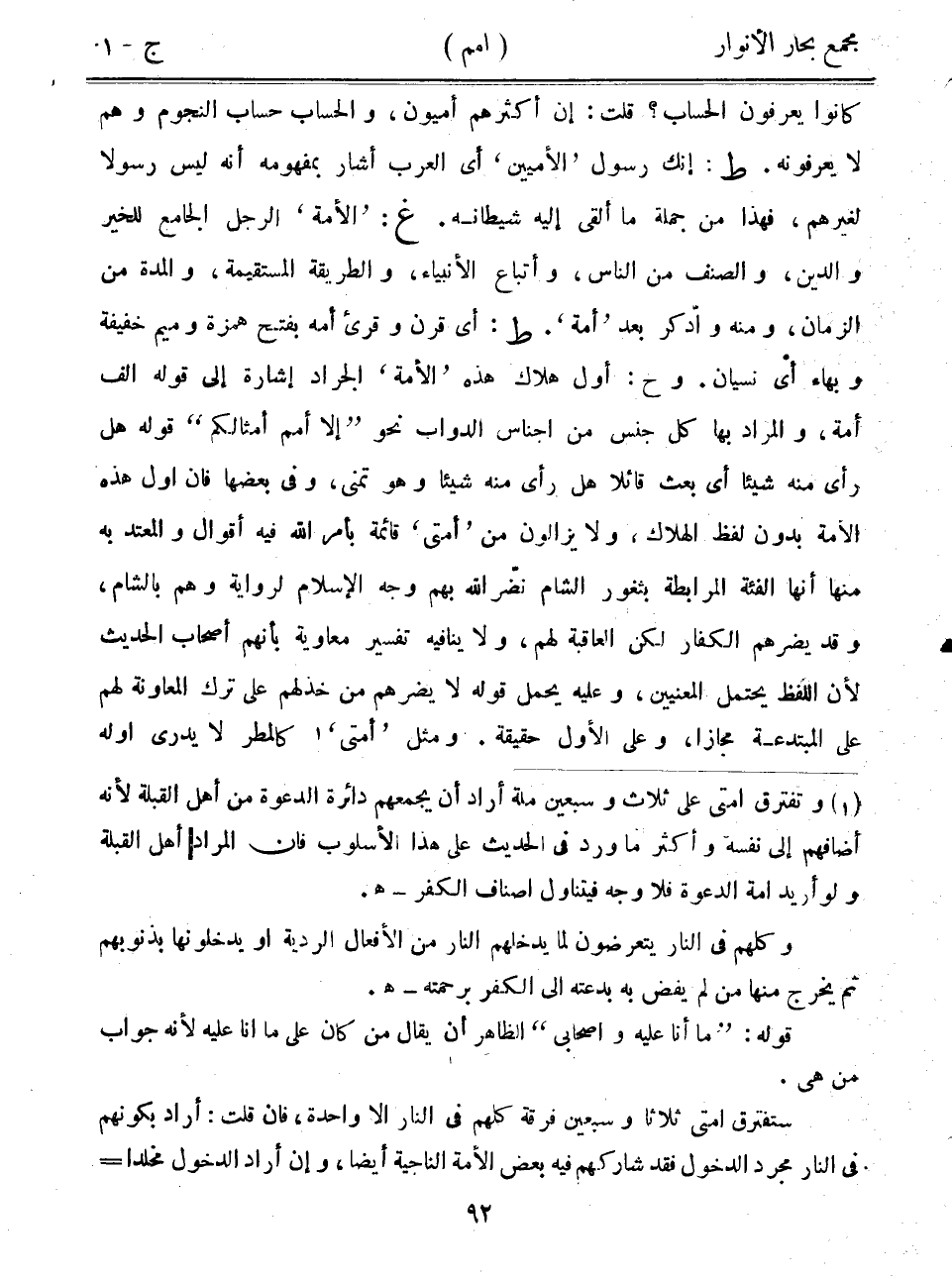 كانوا يعرفون الحساب؟ قلت: إن أكثرهم أميون، والحساب حساب النجوم وهم لا يعرفونه. ط: إنك رسول "الأميين" أي العرب أشار بمفهومه أنه ليس رسولاً لغيرهم، فهذا من جملة ما ألقى إليه شيطانه. غ: "الأمة" الرجل الجامع للخير والدين، والصنف من الناس، وأتباع الأنبياء، والطريقة المستقيمة، والمدة من الزمان، ومنه وادكر بعد "أمة". ط: أي قرن وقرئ أمه بفتح همزة وميم خفيفة وبهاء أي نسيان. وح: أول هلاك هذه "الأمة" الجراد إشارة إلى قوله ألف أمة، والمراد بها كل جنس من أجناس الدواب نحو "إلا أمم أمثالكم" قوله هل رأى منه شيئاً أي بعث قائلاً هل رأى منه شيئاً وهو تمني، وفي بعضها فإن أول هذه الأمة بدون لفظ الهلاك، ولا يزالون من "أمتي" قائمة بأمر الله فيه أقوال والمعتد به منها أنها الفئة المرابطة بثغور الشام نضر الله بهم وجه الإسلام لرواية وهم بالشام، وقد يضرهم الكفار لكن العاقبة لهم، ولا ينافيه تفسير معاوية بأنهم أصحاب الحديث لأن اللفظ يحتمل المعنيين، وعليه يحمل قوله لا يضرهم من خذلهم على ترك المعاونة لهم على المبتدعة مجازاً، وعلى الأول حقيقة. ومثل "أمتي" كالمطر لا يدري أوله