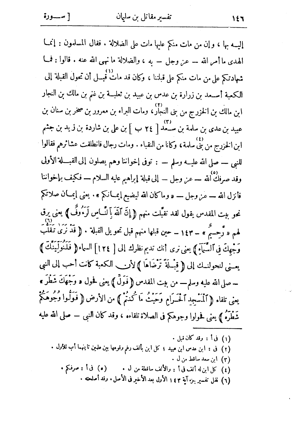 (6) نقل تفسير جزء آية 143 الأول بعد الأخير فى الأصل. وقد أصلحته.
