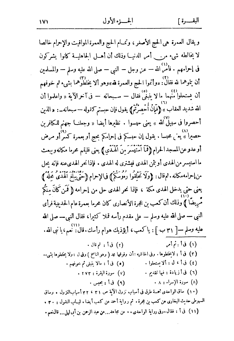 (10) ساق الواحدي خمسة طرق فى أسباب نزول الآية ص 31، 32 أسباب النزول. وساق السيوطي حديث البخاري عن كعب بن عجرة. ثم رواية أحمد عن كعب أيضا. لباب النقول: 30.