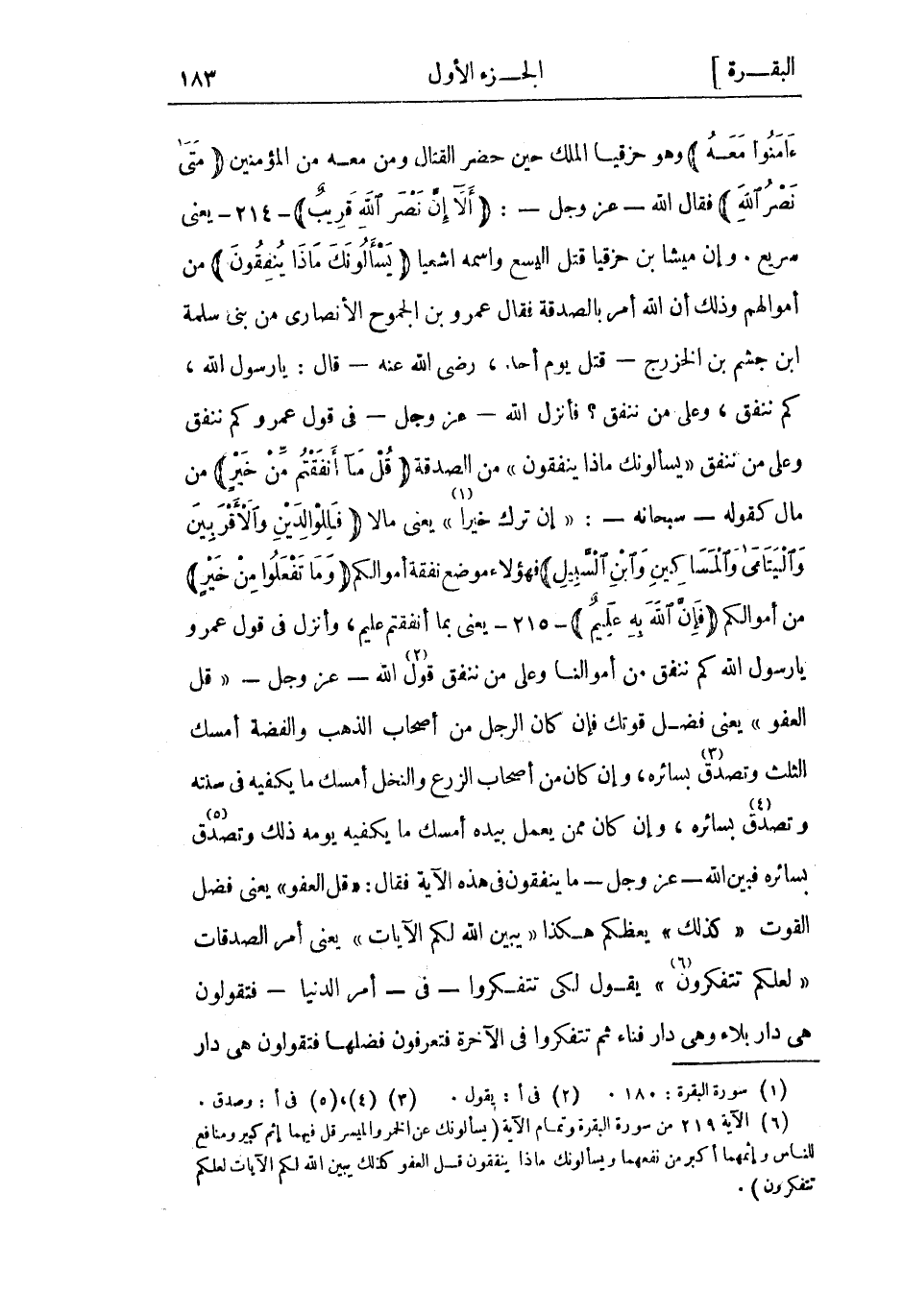(6) الآية 219 من سورة البقرة وتمام الآية يَسْئَلُونَكَ عَنِ الْخَمْرِ وَالْمَيْسِرِ قُلْ فِيهِما إِثْمٌ كَبِيرٌ وَمَنافِعُ لِلنَّاسِ وَإِثْمُهُما أَكْبَرُ مِنْ نَفْعِهِما وَيَسْئَلُونَكَ مَاذَا يُنْفِقُونَ قُلِ الْعَفْوَ كَذلِكَ يُبَيِّنُ اللَّهُ لَكُمُ الْآياتِ لَعَلَّكُمْ تَتَفَكَّرُونَ.
