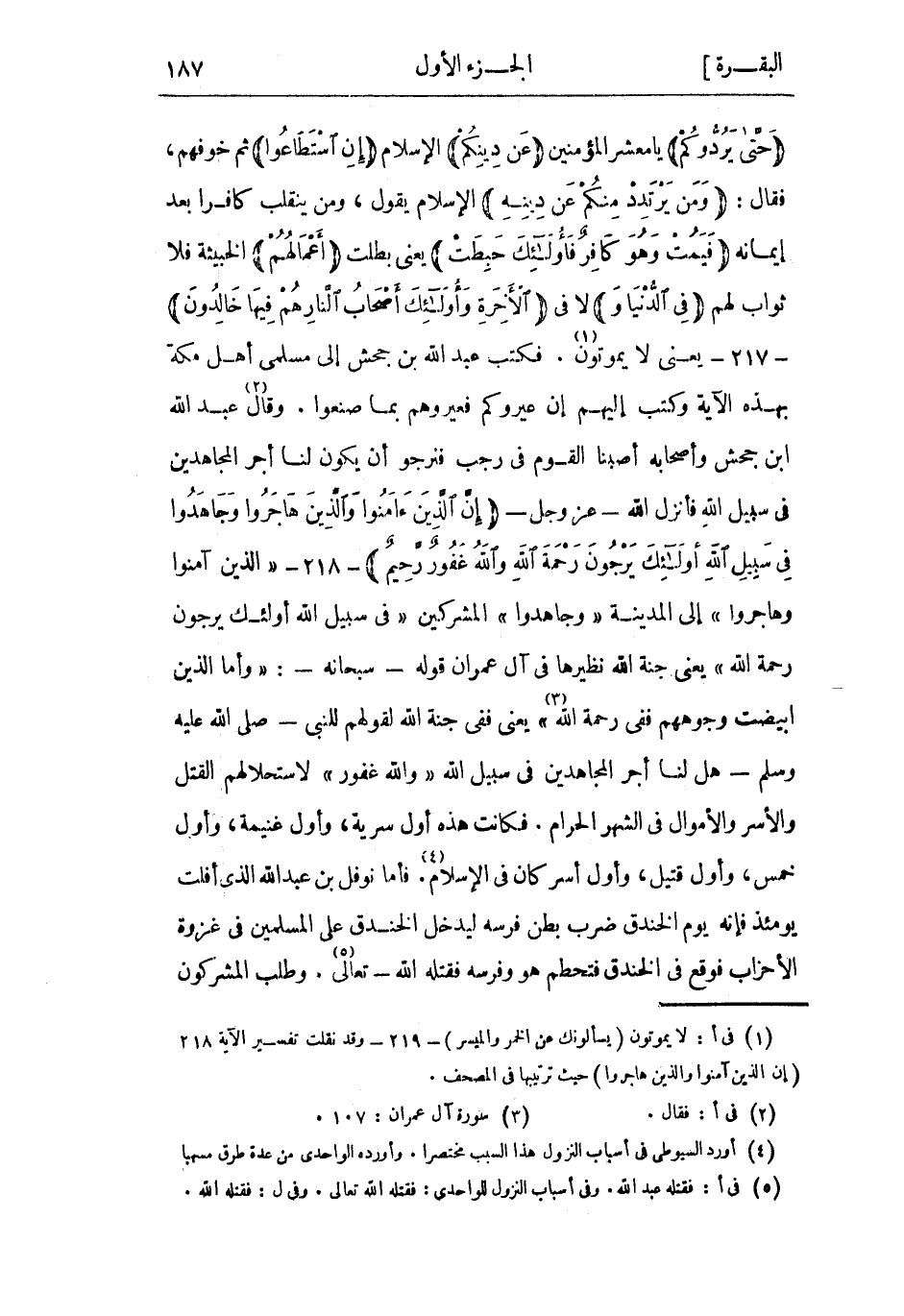 (1) فى أ: لا يموتون يَسْئَلُونَكَ عَنِ الْخَمْرِ وَالْمَيْسِرِ- 219- وقد نقلت تفسير الآية 218 إِنَّ الَّذِينَ آمَنُوا وَالَّذِينَ هاجَرُوا حيث ترتيبها فى المصحف.