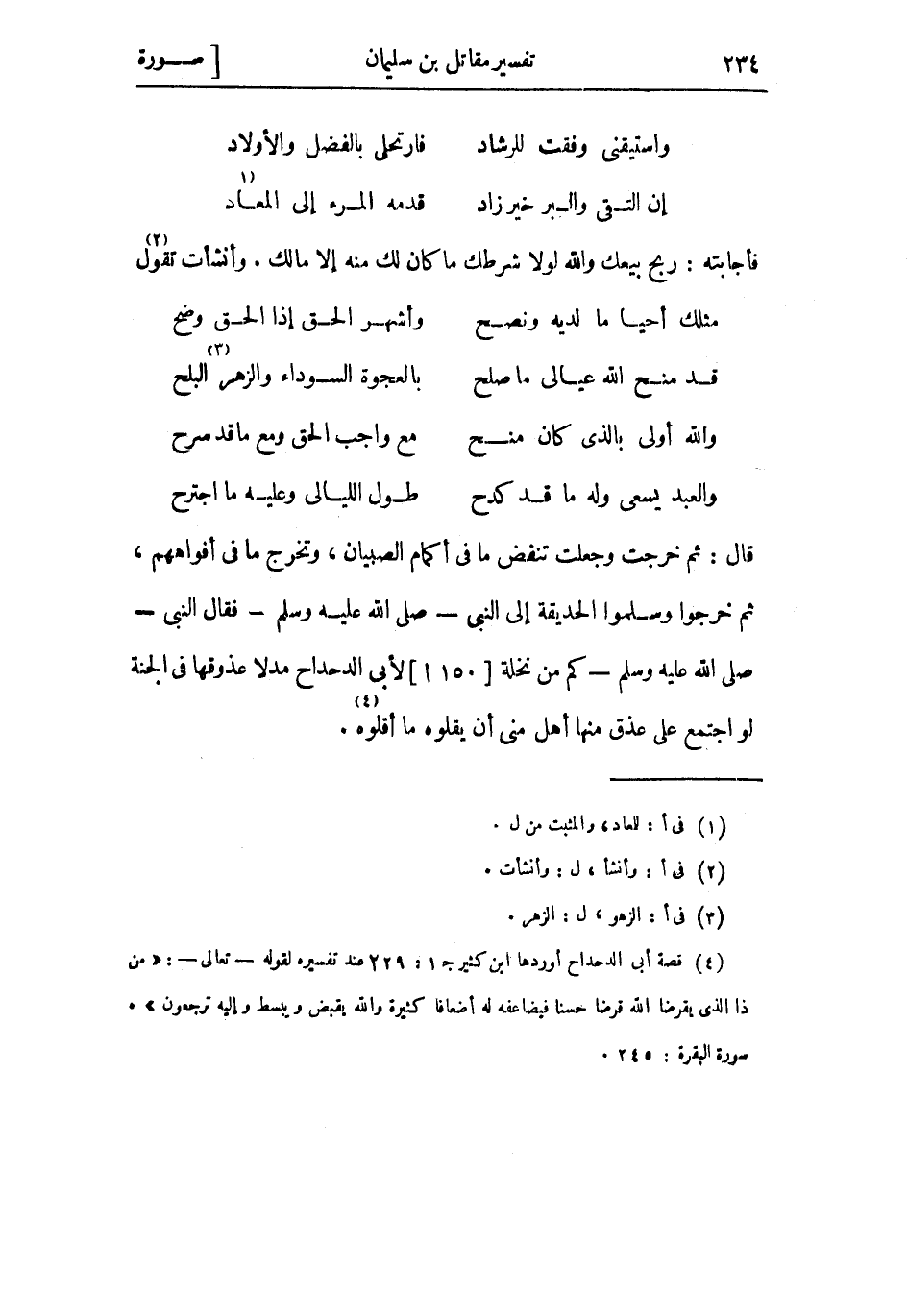 (4) قصة أبى الدحداح أوردها ابن كثير ج 1: 229 عند تفسيره لقوله- تعالى-: مَنْ ذَا الَّذِي يُقْرِضُ اللَّهَ قَرْضاً حَسَناً فَيُضاعِفَهُ لَهُ أَضْعافاً كَثِيرَةً وَاللَّهُ يَقْبِضُ وَيَبْصُطُ وَإِلَيْهِ تُرْجَعُونَ.