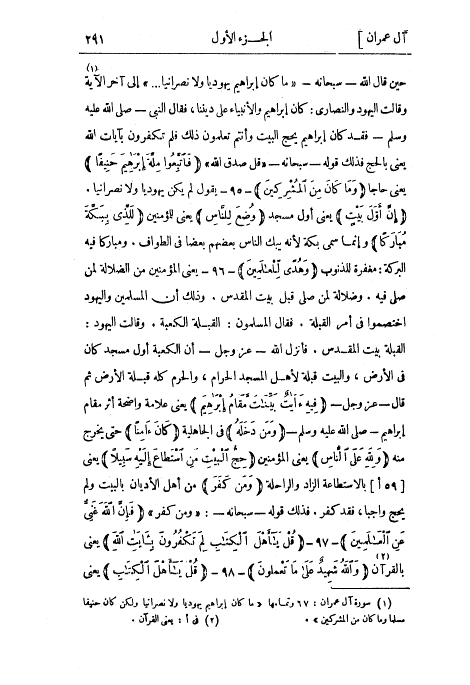 (1) سورة آل عمران: 67 وتمامها مَا كانَ إِبْراهِيمُ يَهُودِيًّا وَلا نَصْرانِيًّا وَلكِنْ كانَ حَنِيفاً مُسْلِماً وَما كانَ مِنَ الْمُشْرِكِينَ.
