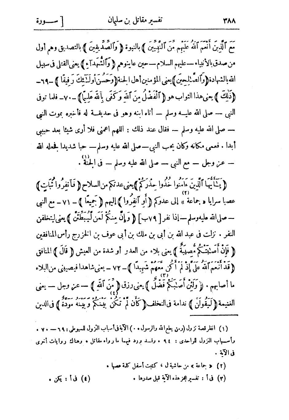 (1) انظر قصة نزول (وَمَنْ يُطِعِ اللَّهَ وَالرَّسُولَ..) الآية فى أسباب النزول للسيوطي: 69- 70.