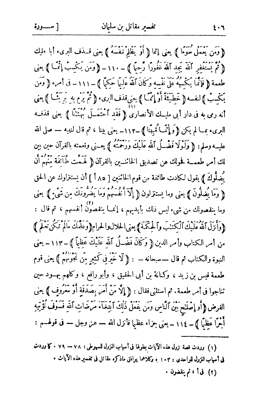 (1) وردت قصة نزول هذه الآيات بطولها فى أسباب النزول للسيوطي: 78- 79. كما وردت فى أسباب النزول للواحدي: 103. وكلاهما يوافق ما ذكره مقاتل فى تفسير هذه الآيات.