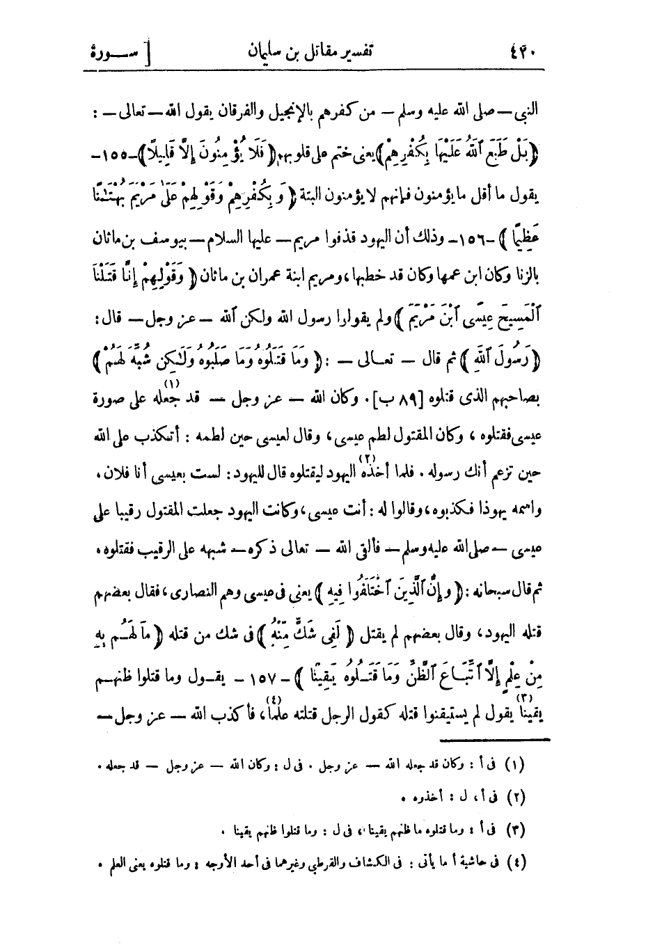 (4) فى حاشية أما يأتى: فى الكشاف والقرطبي وغيرهما فى أحد الأوجه: وما قتلوه يعنى العلم.