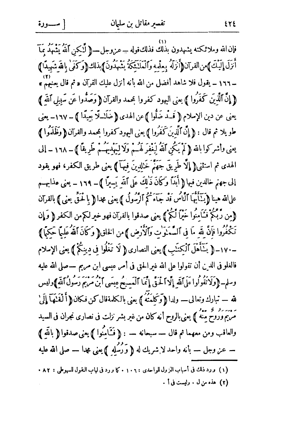 (1) ورد ذلك فى أسباب النزول للواحدي: 106. كما ورد فى لباب النقول للسيوطي: 82.